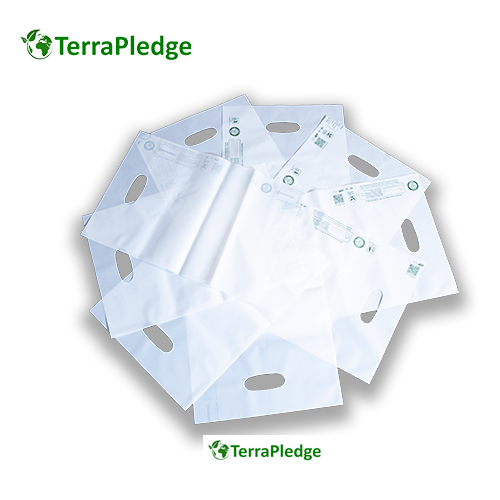 100% Compostable D-Cut Carry Bags (White) - 10 x 15 inches - 55 bags/kg - 70 microns