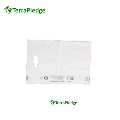 100% Compostable D-Cut Carry Bags (White) - 16 x 20 inches - 25 bags/kg - 70 microns