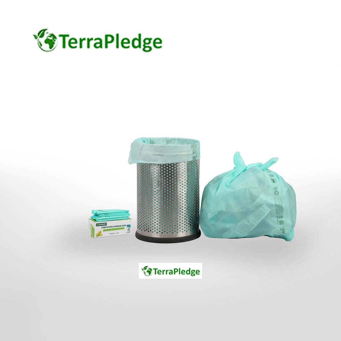 100% Compostable Eco-friendly Garbage Bags I SMALL (17 x 19 in.) I 15 bags per pack I Capacity 20L I Green Colour