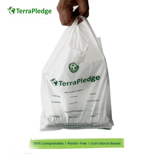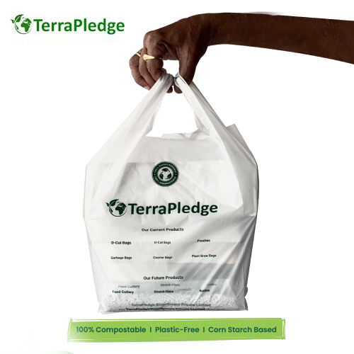 100% Compostable U-Cut Carry Bags (White) - 8 x 10 inches - 220 bags/kg - 30 microns