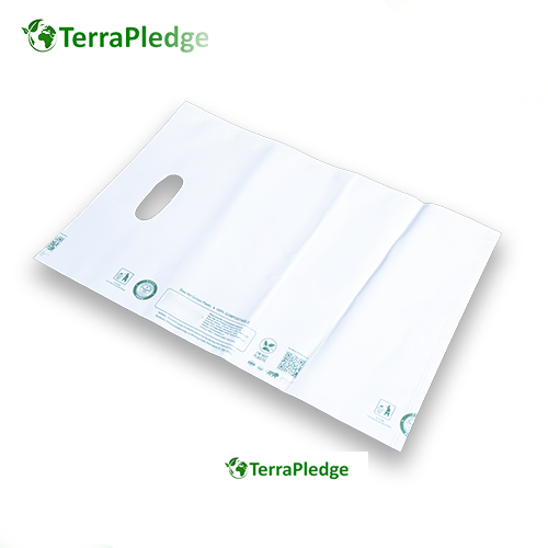 100% Compostable D-Cut Carry Bags (White) - 16 x 20 inches - 25 bags/kg - 70 microns