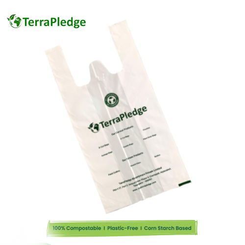 100% Compostable U-Cut Carry Bags (White) - 8 x 10 inches - 220 bags/kg - 30 microns